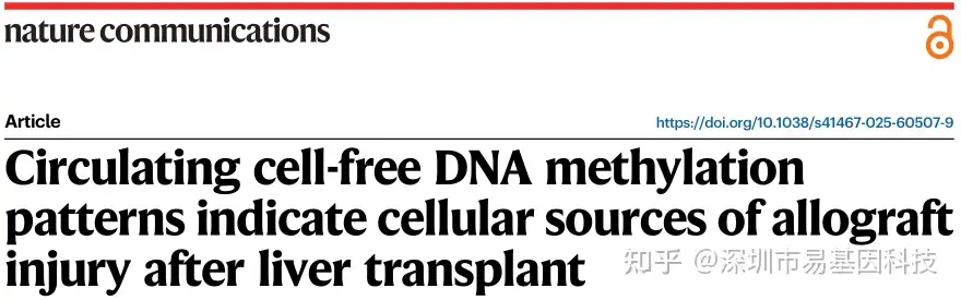 标题:Circulating cell-free DNA methylation patterns indicate cellular sources of allograft injury after liver transplant(cfDNA甲基化模式揭示肝脏移植后同种异体移植物损伤的细胞来源)