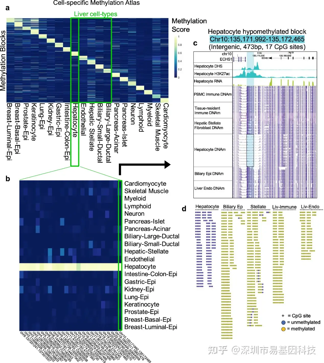 研究发现,肝细胞类型特异性的低甲基化区域与染色质可及性和H3K27ac结合区域高度重合,表明这些区域在维持细胞类型特异性功能中具有重要作用。这些区域的甲基化模式可以作为细胞损伤的生物标志物。