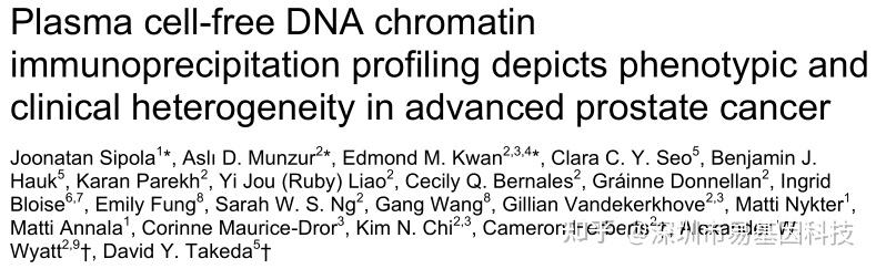 标题:Plasma Cell–Free DNA Chromatin Immunoprecipitation Profiling Depicts Phenotypic and Clinical Heterogeneity in Advanced Prostate Cancer(血浆cfDNA 染色质免疫沉淀分析描述了转移性前列腺癌的表型和临床异质性)