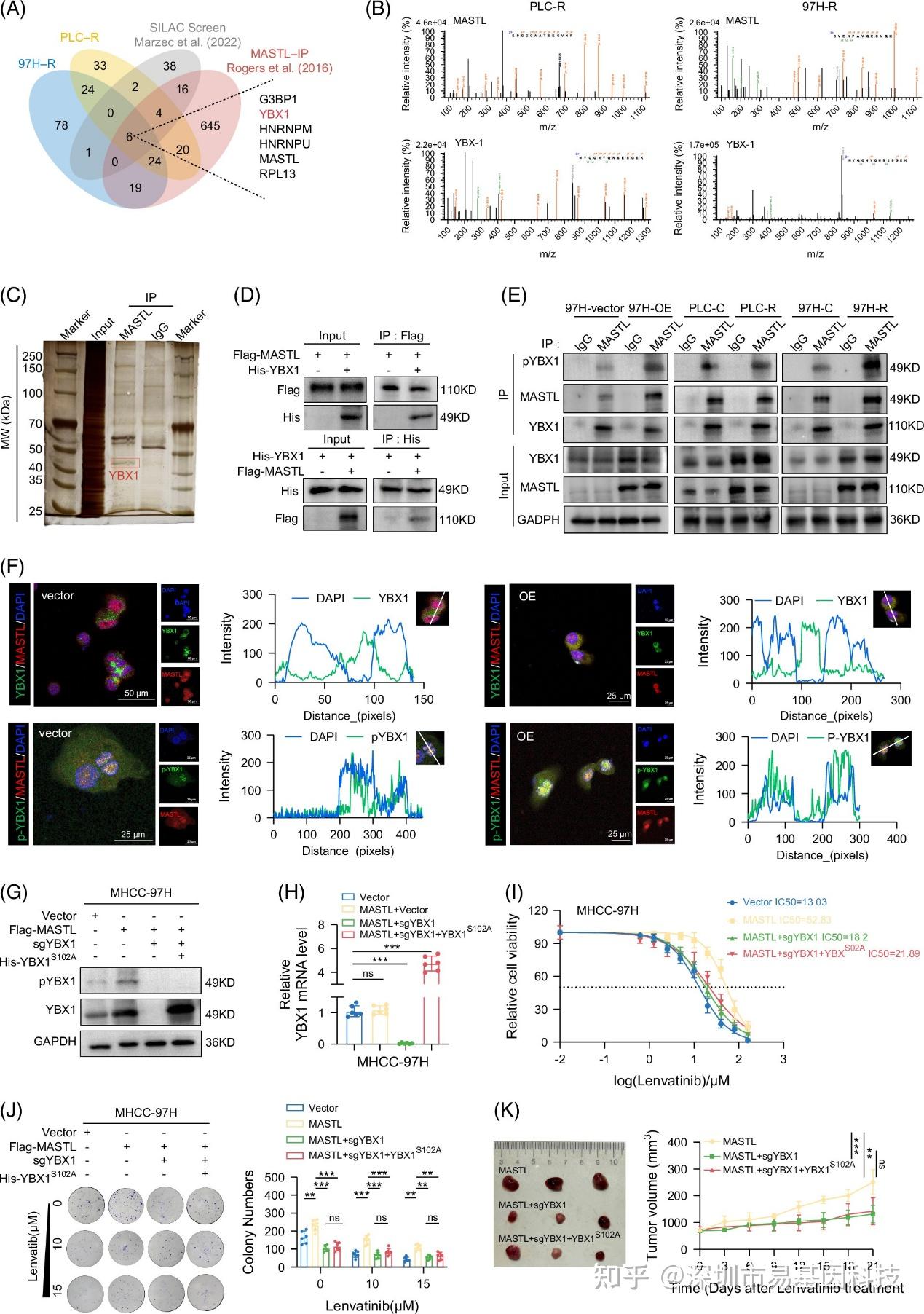 图4:MASTL通过促进YBX1的磷酸化和核转运促进仑伐替尼耐药。