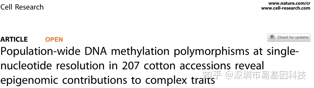 易基因:中国科学家方磊/谷晓峰团队通过群体DNA甲基化多态性分析 揭示表观遗传育种在作物改良中的巨大潜力(国人佳作) :Cell Res/IF25.9