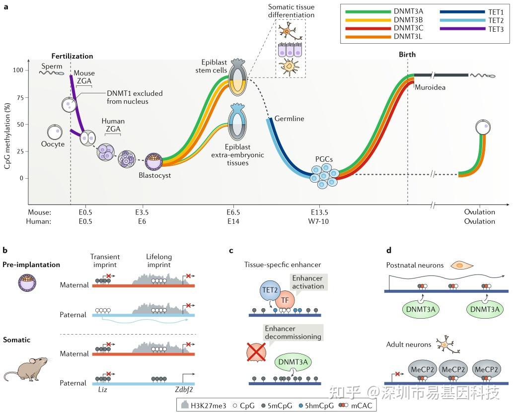 易基因:Nat Rev Genet/IF90.2 DNA甲基化在哺乳动物胚胎发育和疾病中的多种重要作用|深度综述