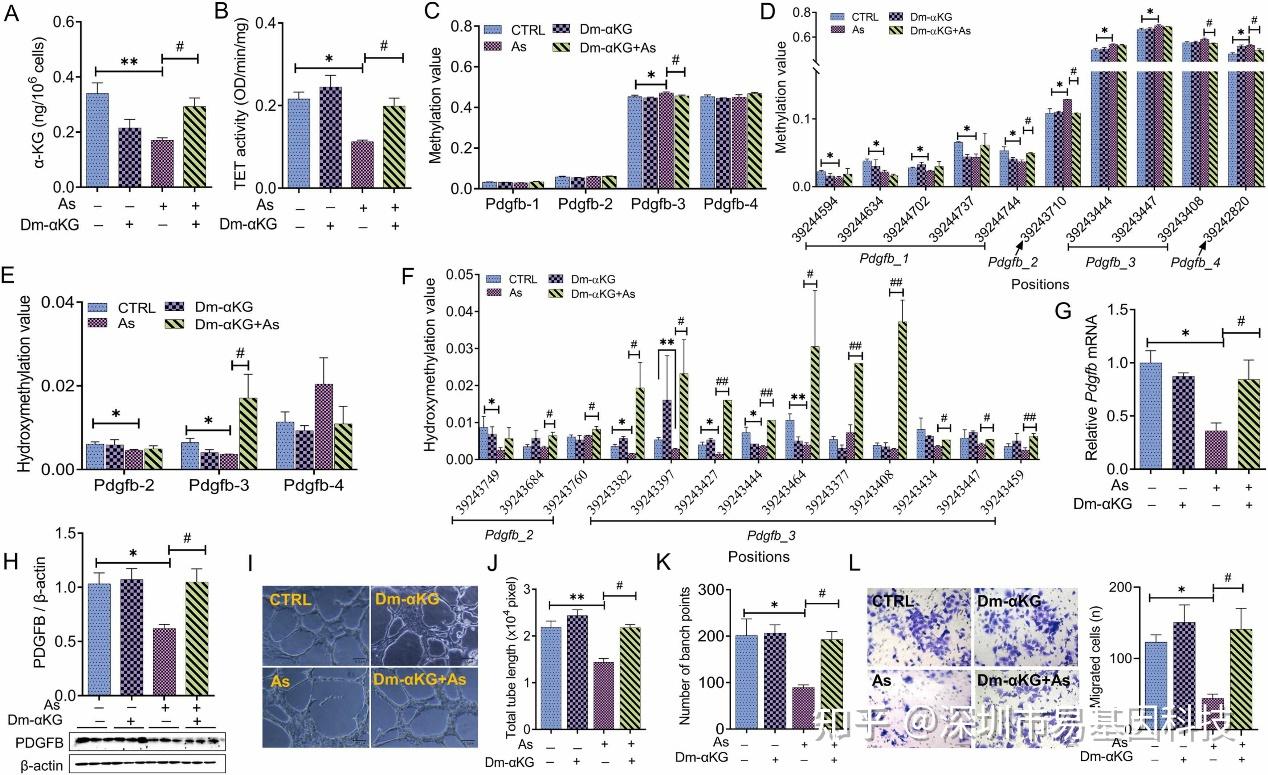 - α-KG补充改善砷诱导的Pdgfb表观遗传修饰改变和血管生成能力。