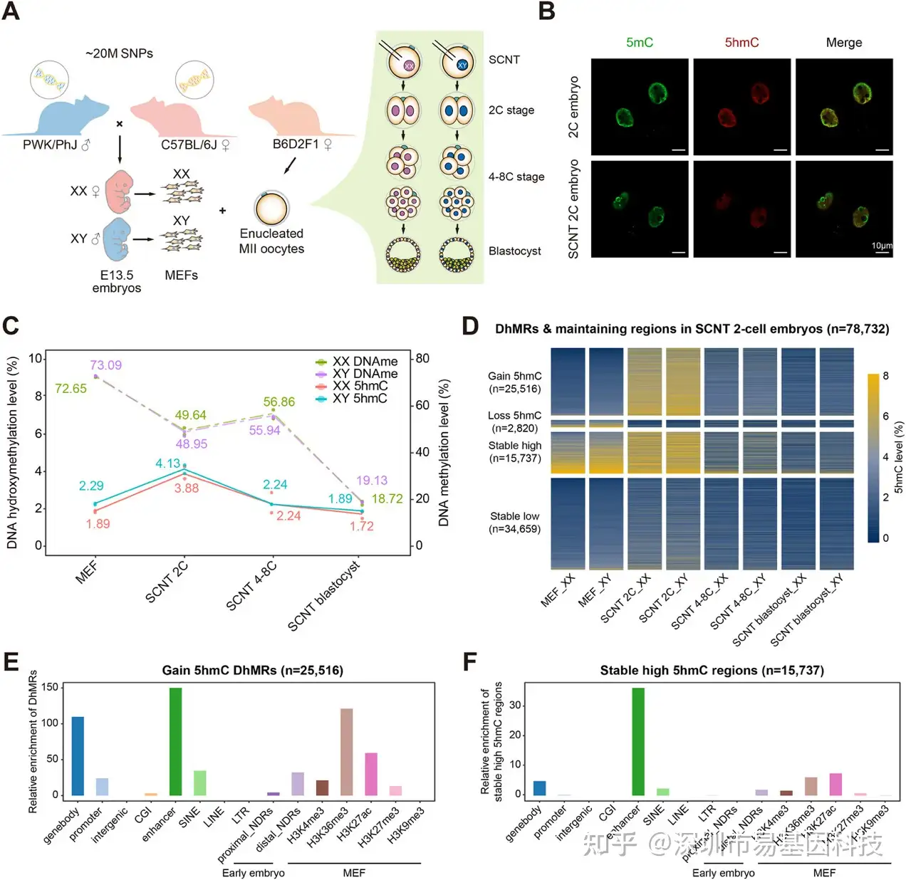 图1:SCNT胚胎发育过程中细胞核5hmC的全基因组动态图谱