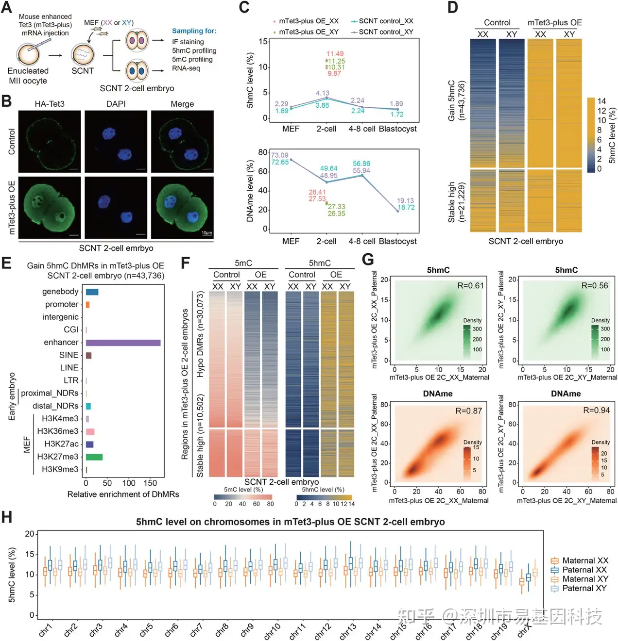 易基因:Adv Sci/IF14.1:中科院动物所郭帆团队等表观多组学揭示克隆胚胎DNA羟甲基化动态及功能 解析体细胞重编程障碍机制