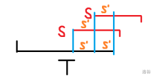 - \(S\) 可以和一段包含 \(T_i\) 的部分匹配,此时显然是读入进来的 \(T_{1\sim i}\) 的一个后缀匹配上了 \(S\) 的前缀。