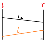 - 如果 \(l_1\) 在这个区间内都在 \(l_2\) 的上方: