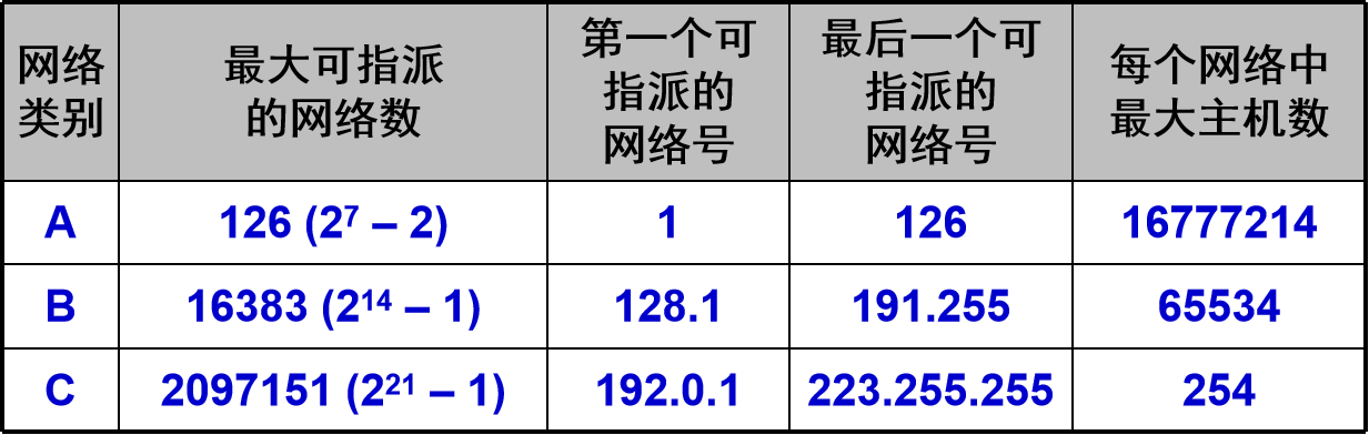 C类地址中net-id(-1):第一个192.0.0.*实际网络中不指派。