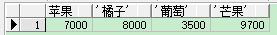 1 create table Fruit(id int,name varchar(20), Q1 int, Q2 int, Q3 int, Q4 int); 2 3 insert into Fruit values(1,'苹果',1000,2000,3300,5000); 4 insert into Fruit values(2,'橘子',3000,3000,3200,1500); 5 insert into Fruit values(3,'香蕉',2500,3500,2200,2500); 6 insert into Fruit values(4,'葡萄',1500,2500,1200,3500); 7 select * from Fruit