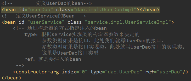 这里我们要注入的是UserDao的bean ,所以参数为UserDao