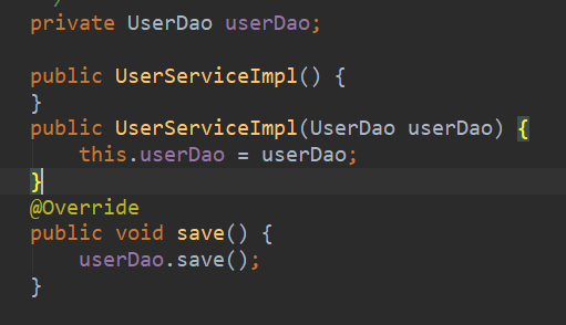 第一步是要给当前的bean(此处为Service实现类)提供要注入的bean的有参构造器,同时不要忘记把无参构造器写上