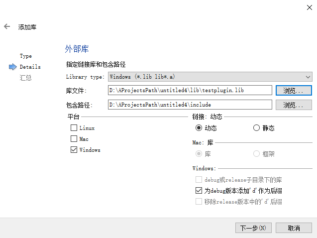 6、新建include和lib目录并将test.h文件和.lib文件拷贝到目录下,并添加到项目中