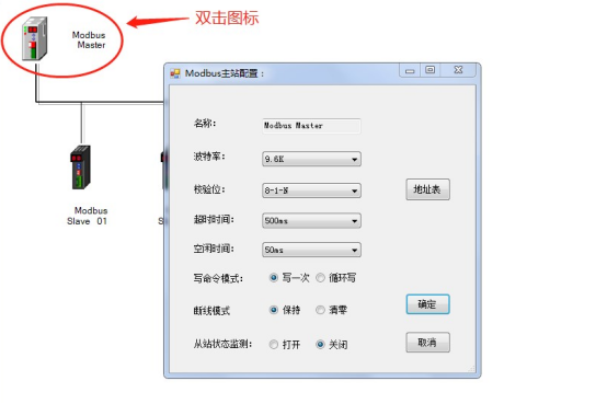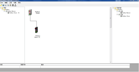 5.双击软件右侧设备列表中的Modbus Slave,将从站的Modbus添加到主站。添加后,您可以在软件的主窗口中看到Modbus总线中的所有站点,如下所示: