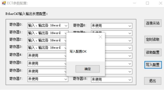 (8)填写用户需要的输入和输出数据长度,注意数据长度是累积的,点击“写入配置”。