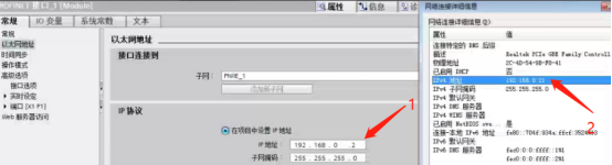 配置PLC的IP地址(应与本地IP地址保持在同一网段)