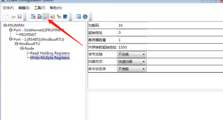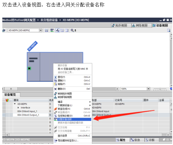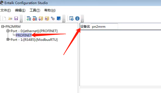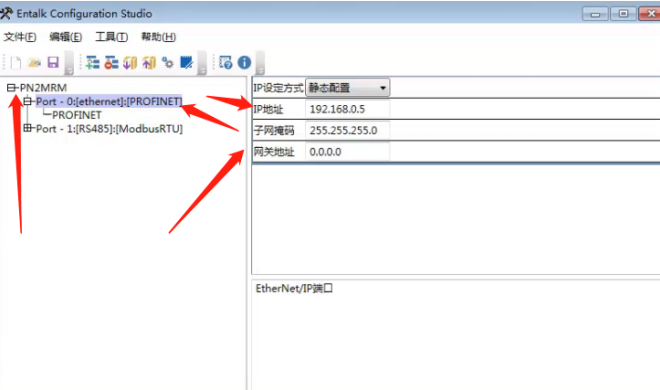 点击HPortt,打开PN2MRMI下拉菜单-O:[ethernet]:[PROFINET]设置IP地址;点击PROFINET修改网关设备名称(网关名称应与博图配置一致)