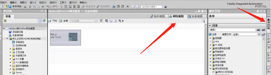 安装GSD文件后,单击打开网络视图下的硬件目录。