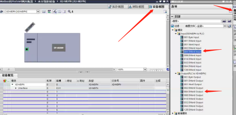 点击设备视图中的硬件目录,添加读写数据长度,本案选择读取4个数据长度,写出4个数据长度。