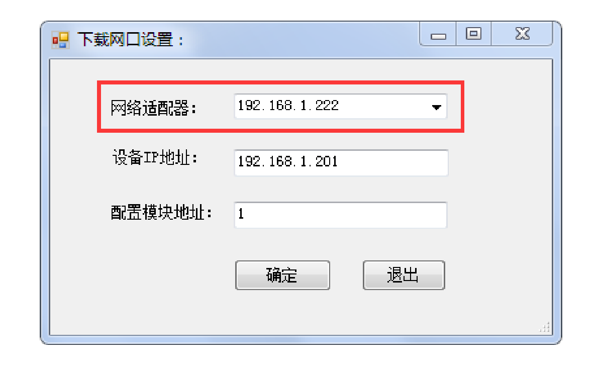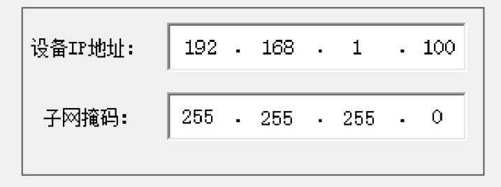 (2)网关处于配置状态时,此时网口使用 192.168.1.100 的 IP 地址,应使电脑的 IP 网段设置于 192.168.1.xxx 。