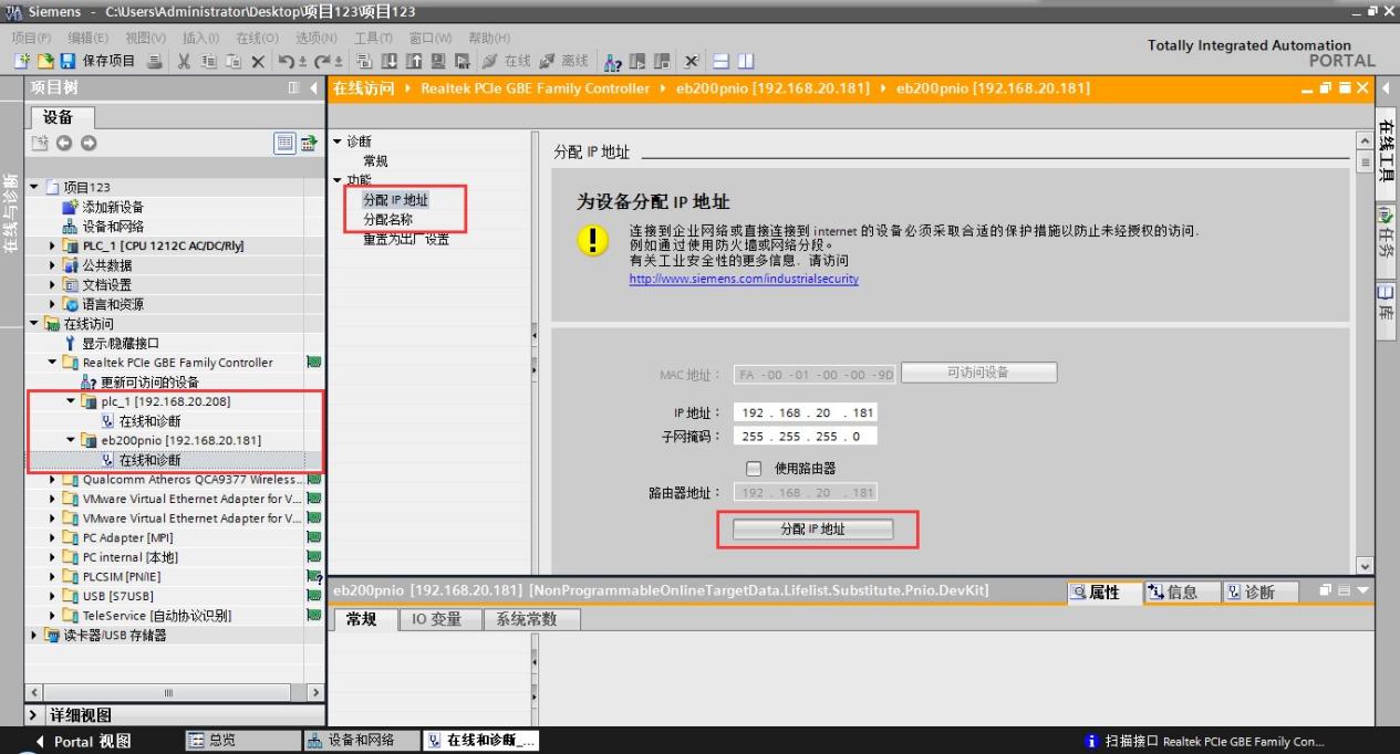 6、在线访问----修改实际 PLC 和网关的 IP 地址和名称(IP 地址要和实际的 PLC