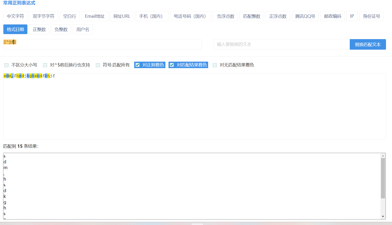 它的作用可以简单的概括为:利用一些特殊符号(也可以直接写需要查找的具体字符)的组合产生一些特殊的含义然后去字符串中筛选出符合条件的数据