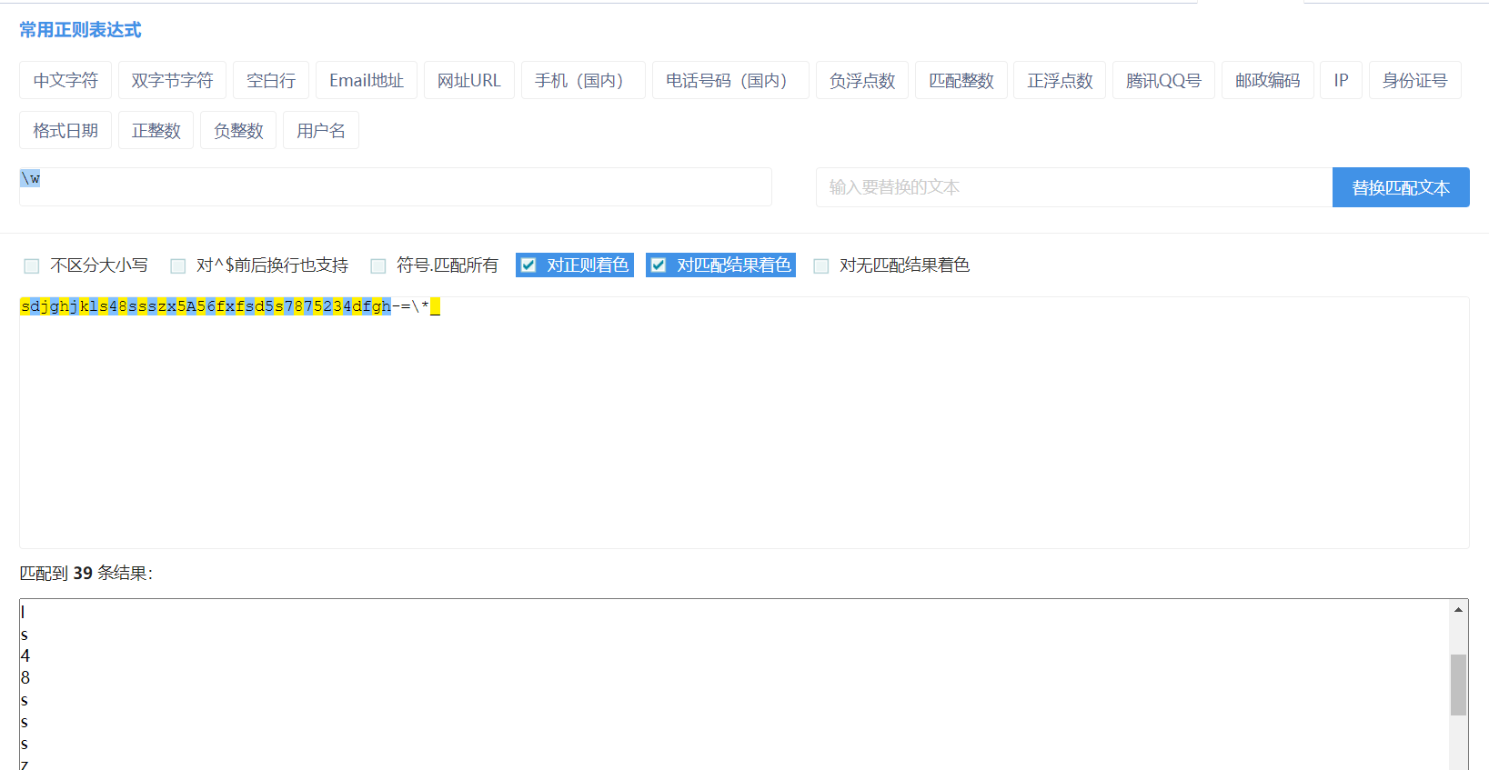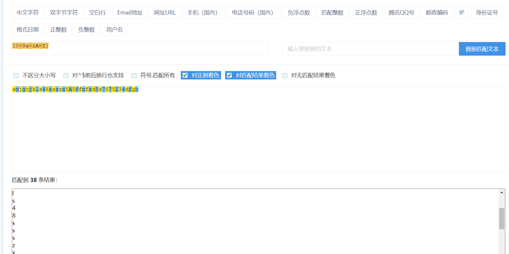 [0-9a-zA-Z]:匹配数字或者小写字母或者大写字母