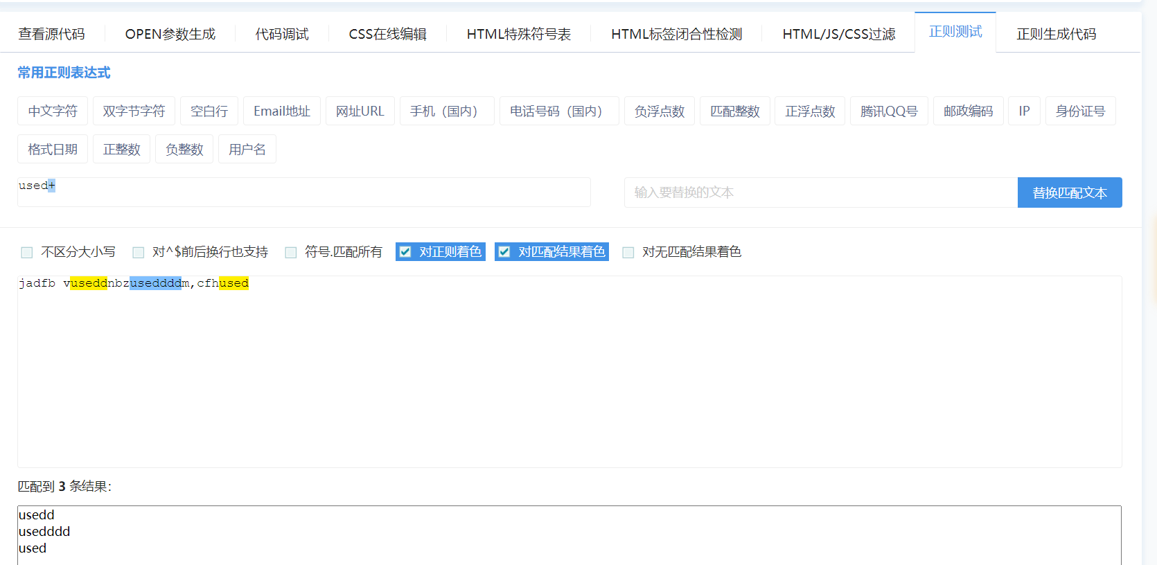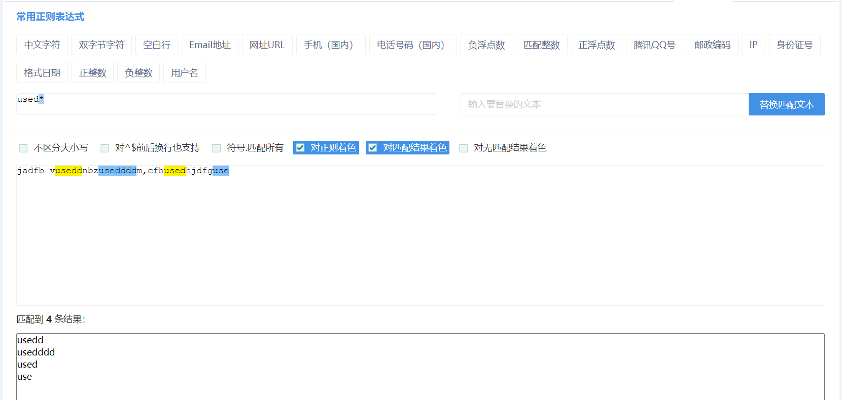 3.查找所有符合正则表达式要求的数据,匹配到一个符合条件的就结束