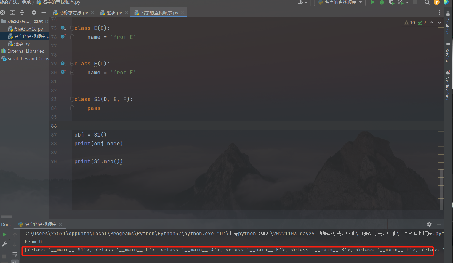 3.1多继承情况下名字的查找顺序:对象名称空间有时直接从对象名称空间中查找