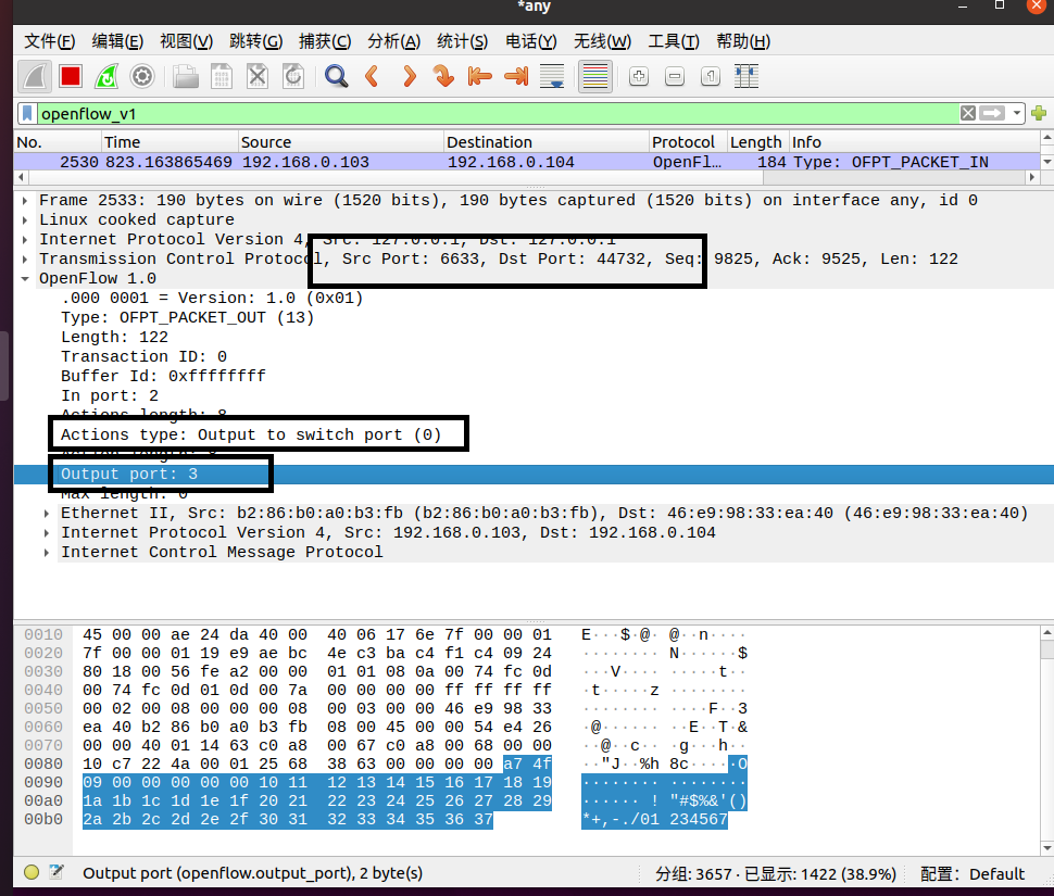 - 能够借助包解析工具,分析与解释 OpenFlow协议的数据包交互过程与机制。