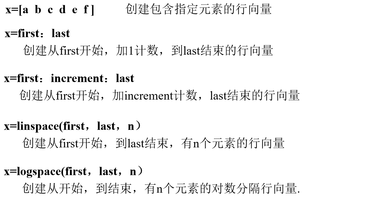 利用冒号“:”操作符创建行向量的基本语法格式: