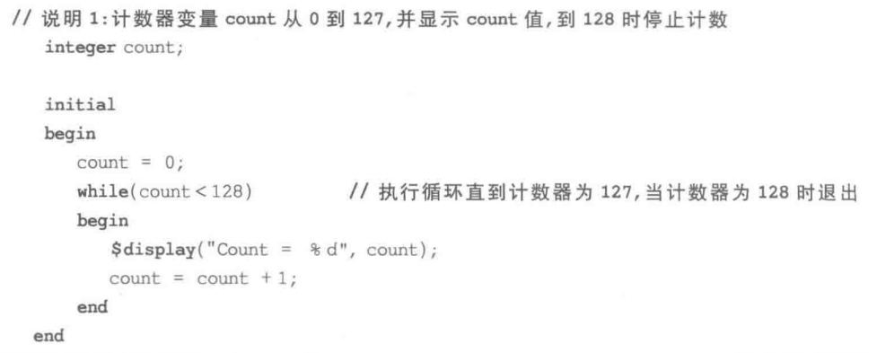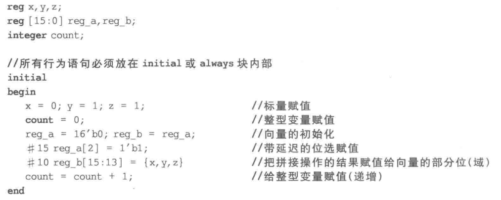 在Verilog 中有两种结构化过程语句:initial语句和always语句,它们是行为级建模的两种语句。其他所有的行为语句只能出现在这两种结构化过程语句里。