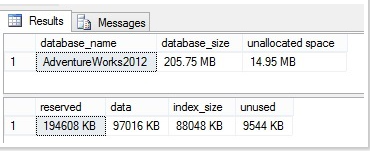 理解一下SQL Server中run ‘exec sp_spaceused’ 的结果。参考 SQL Server – Understanding ‘sp_spaceused’ Results for Database Size Information | DataGinger.com。