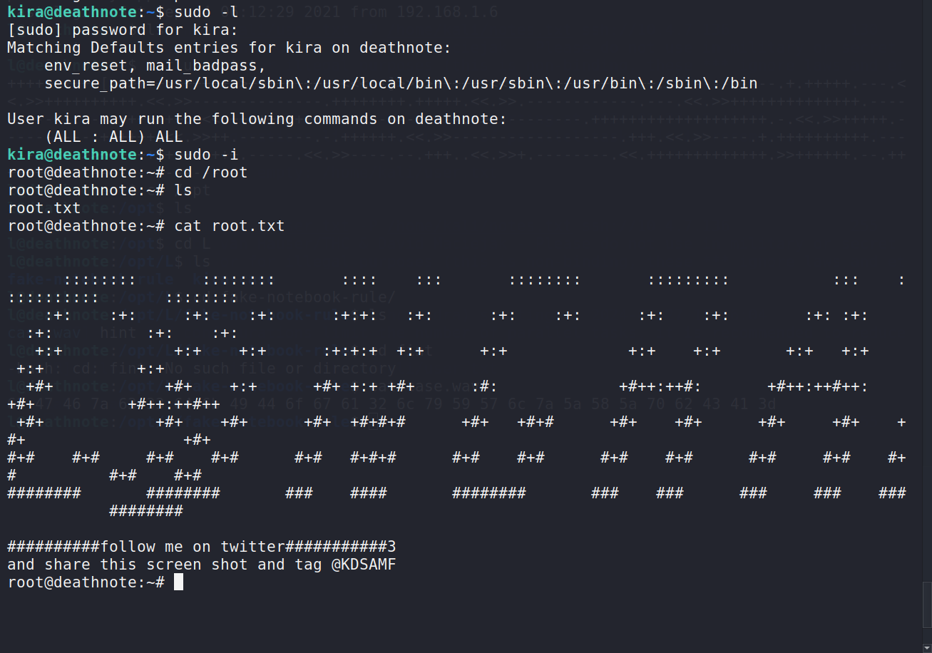 既然明确了用户名L和KIRA,那索性就利用2个字典爆破一下ssh的用户名和密码,成功爆破出ssh的用户名 l 和密码death4me