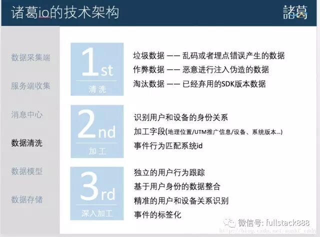 诸葛io的整个数据处理也是符合上面的整个流程,和其他数据分析平台,尤其是传统数据平台,按照处理过程抽象的差异主要如下: