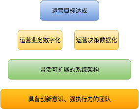 以上分析指明了CRM系统目标以及实现该目标的方法论,但这些仅是抽象的概念。在现实生活中,我们实实在在拥有的只是一个技术和产品团队。利用这个团队去实现“运营目标达成”需要一个金字塔状的RoadMap,如下图: