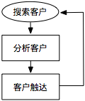 CRM系统的典型高频处理流程包含三个节点:搜索客户、分析客户和客户触达,如下图: