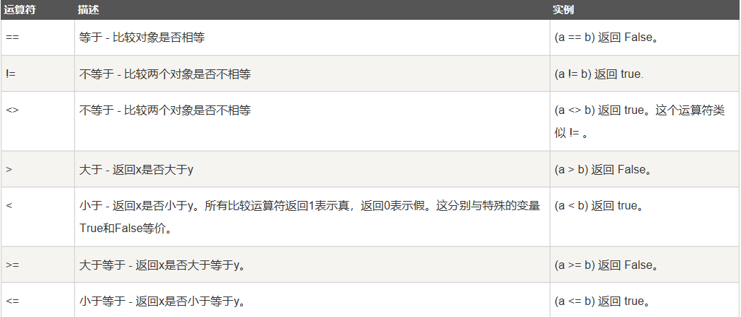 比较运算符,你会发现也是由操作运算符构成,特别记忆一下“不等于”即可。