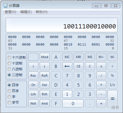 我们发现考号的范围在十进制下的1到10000。然而在这里输入的是二进制。怎么办呢?我们用电脑自带的计算器查一下,发现10000在二进制下是这样的: