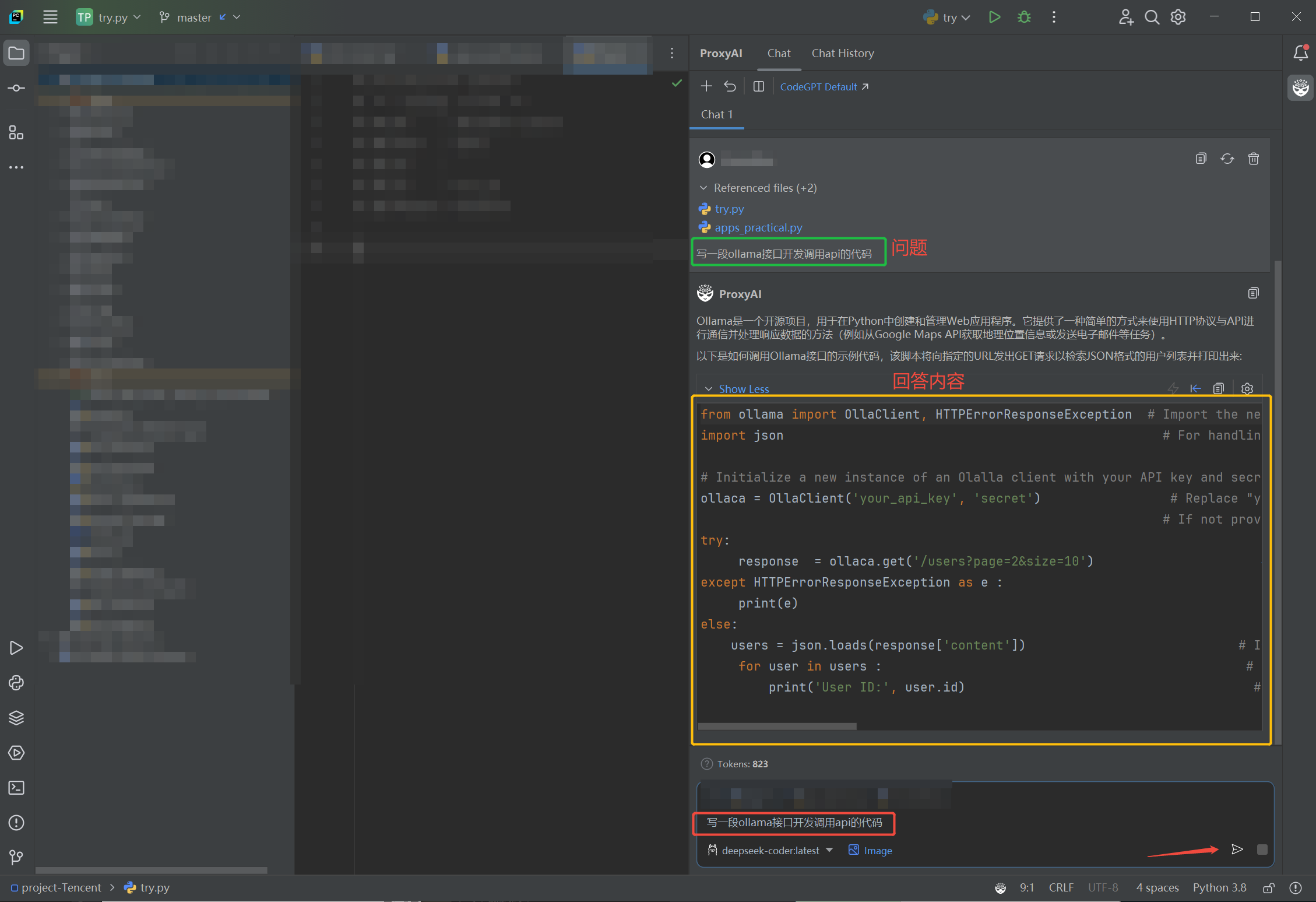 3) 在proxyAI对换框输入编程的需求,发送给大模型,即可返回相应的内容