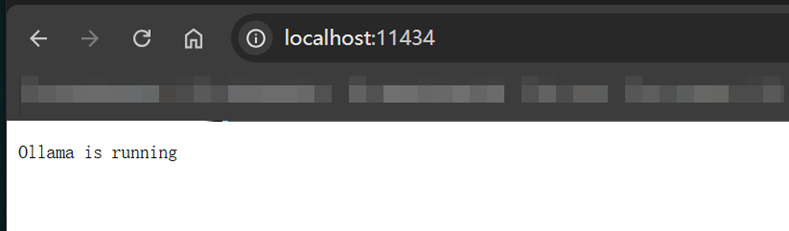 默认的端口是11434,打开浏览器后,输入localhost:11434=> Ollama is running