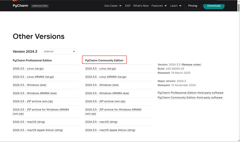1)下载地址https://www.jetbrains.com/pycharm/download/other.html