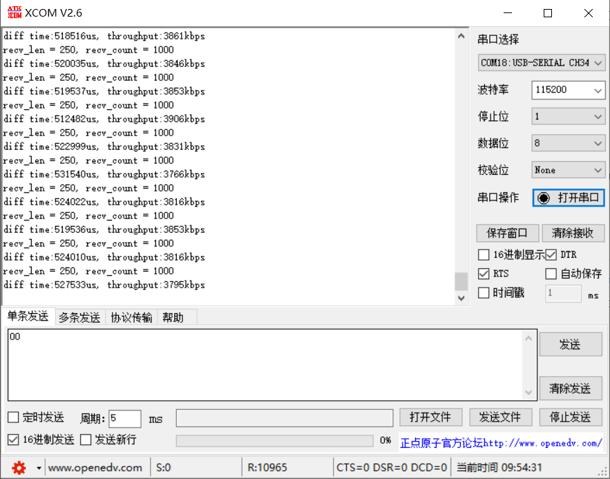 使能4M PYH:在开发板板载天线,且两板距离紧挨时,速度可以达到3.8M bps(475KB/s)