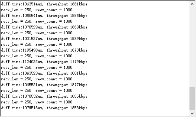 设置sle PHY =2M时:开发板最大电流9.8mA(@3.3V),带宽最大1.8Mbps,