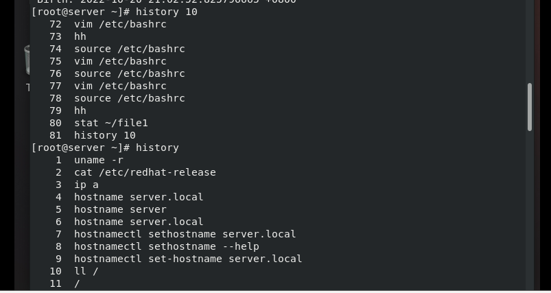 (2)查看命令历史,并调用第十行命令