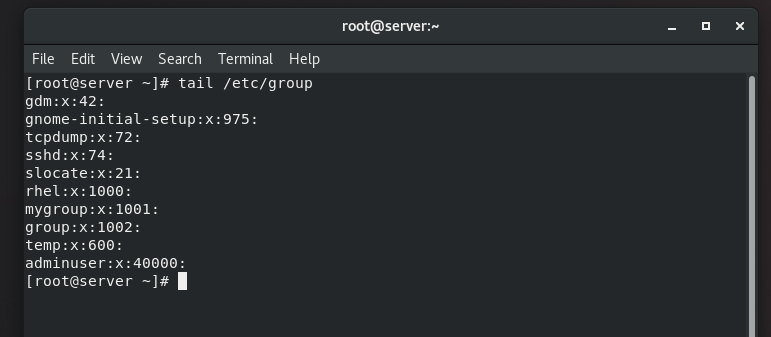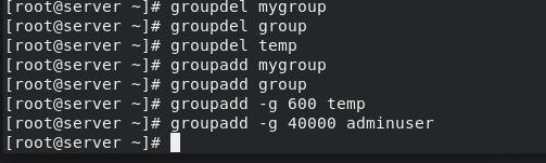 1:创建mygroup组,group组,GID为600的temp组及组id为40000的adminuser组