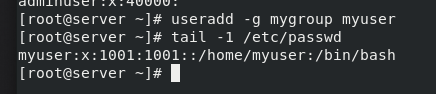 2:创建myuser用户属于mygroup组群,接着用myuser登录,创建ex和hv两个文件于/home/myuser目录,并使hv文件的同组用户是root