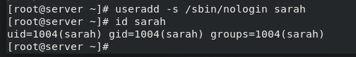 5:创建sarah不属于adminuser组,并将shell设置为不可登录shell