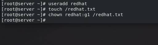 (1)创建g1组,要求创建一个属于redhat用户g1组的文件redhat.txt