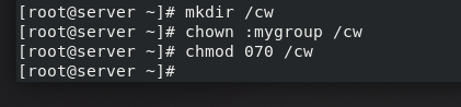 (3)新建/cw目录为财务部存储目录,只能对财务部人员可以写入,并且财务部人员所建立的文件都自动属于 mygroup组中